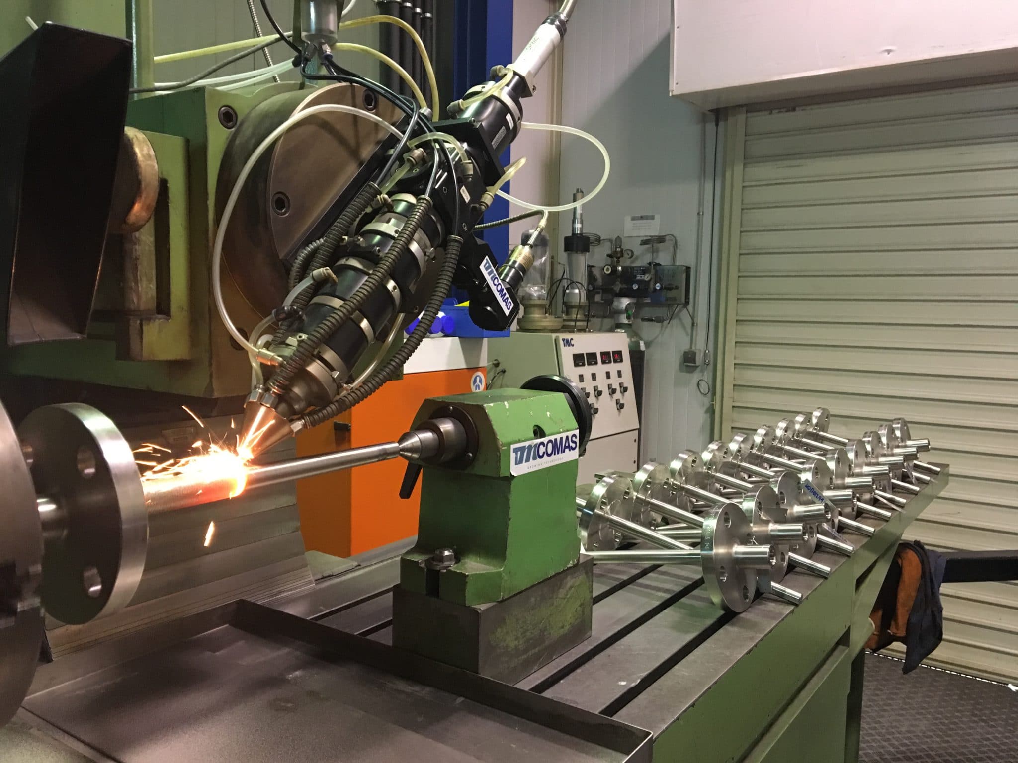 Un autre exemple réel d’application de ce régulateur est le rechargement de gaines pour thermocouple à paroi mince. Dans ce cas, TMCOMAS recharge comme il le fait habituellement, avec Stellite 6, des gaines pour thermocouple de AISI 316 pour un usage dans des environnements où sont combinés des phénomènes de corrosion et d’usure. Pour cette application, le contrôle de la puissance du laser est indispensable pour assurer la qualité de la recharge de Stellite 6 et l’intégrité de la gaine à paroi mince.