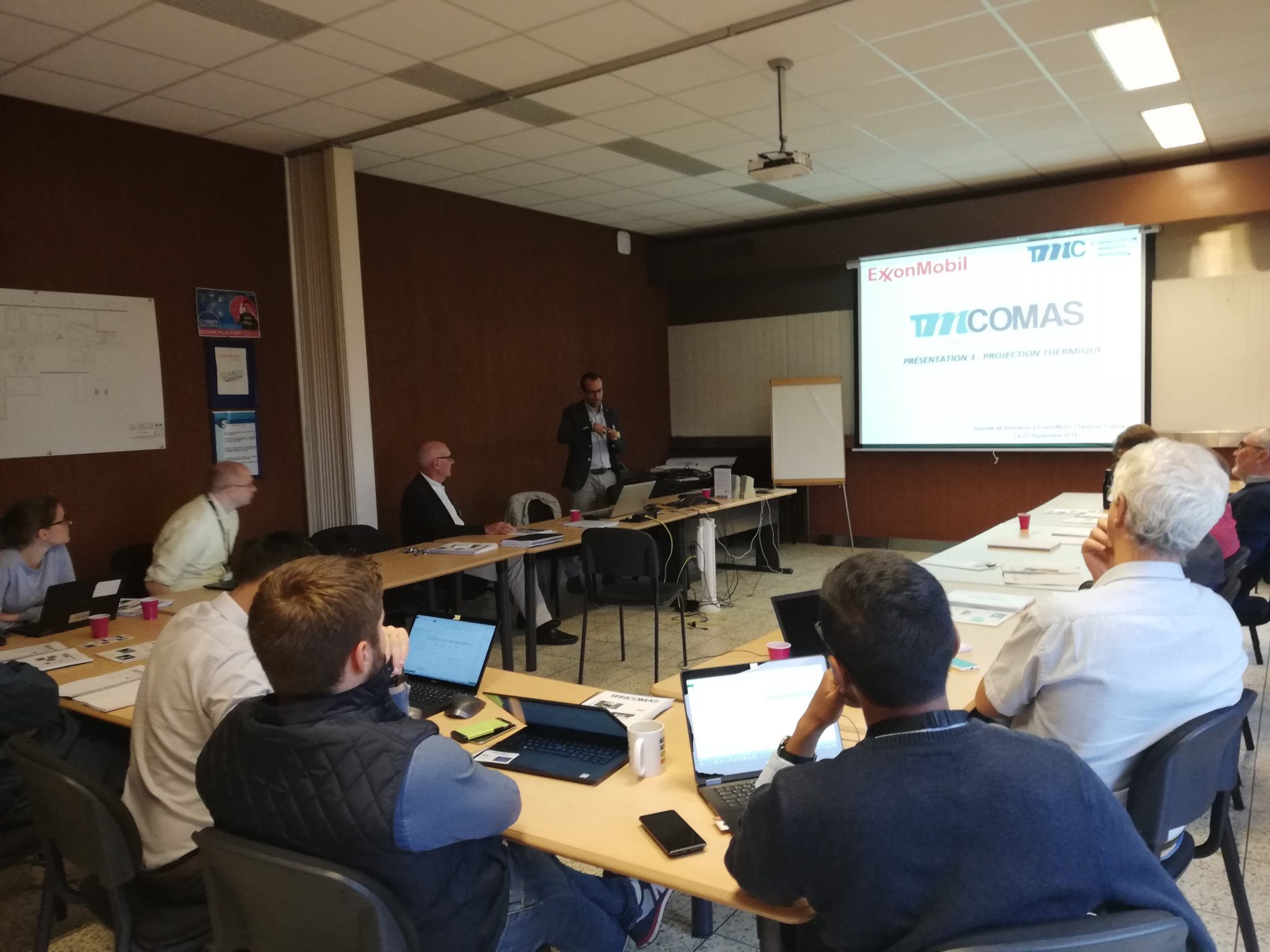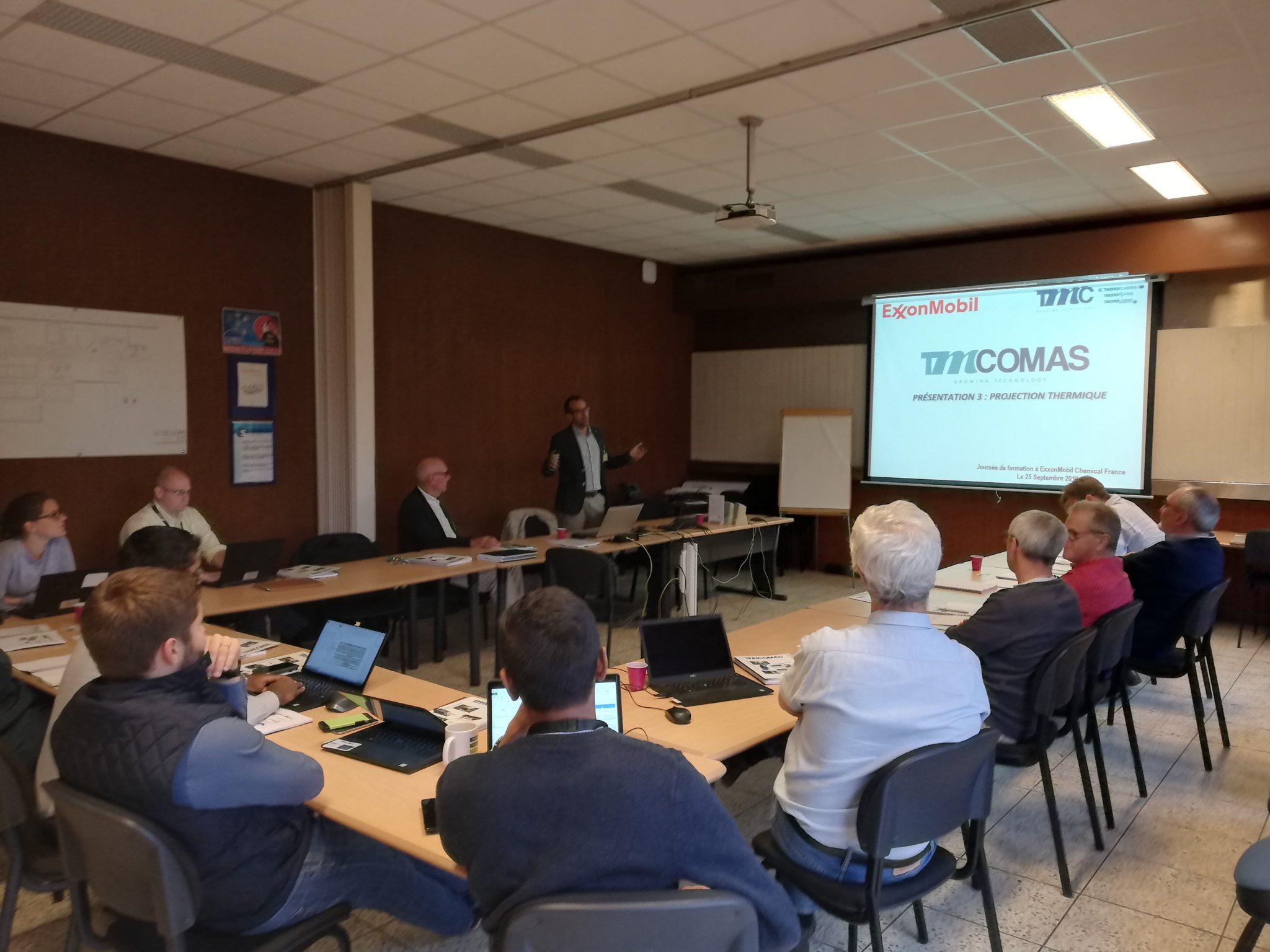 La Jornada, en la que participaron 12 trabajadores de EXXON Mobil, todos ellos técnicos de mantenimiento especialistas en equipos críticos, fue impartida por la Sales Engineer y responsable comercial en Francia de TMCOMAS, Olga Ivanyushina, y por el Responsable del Departamento Técnico de TMCOMAS, el Doctor Jaume Nin, ambos acompañados por el representante comercial de TMCOMAS en Francia, Didier Hessin.